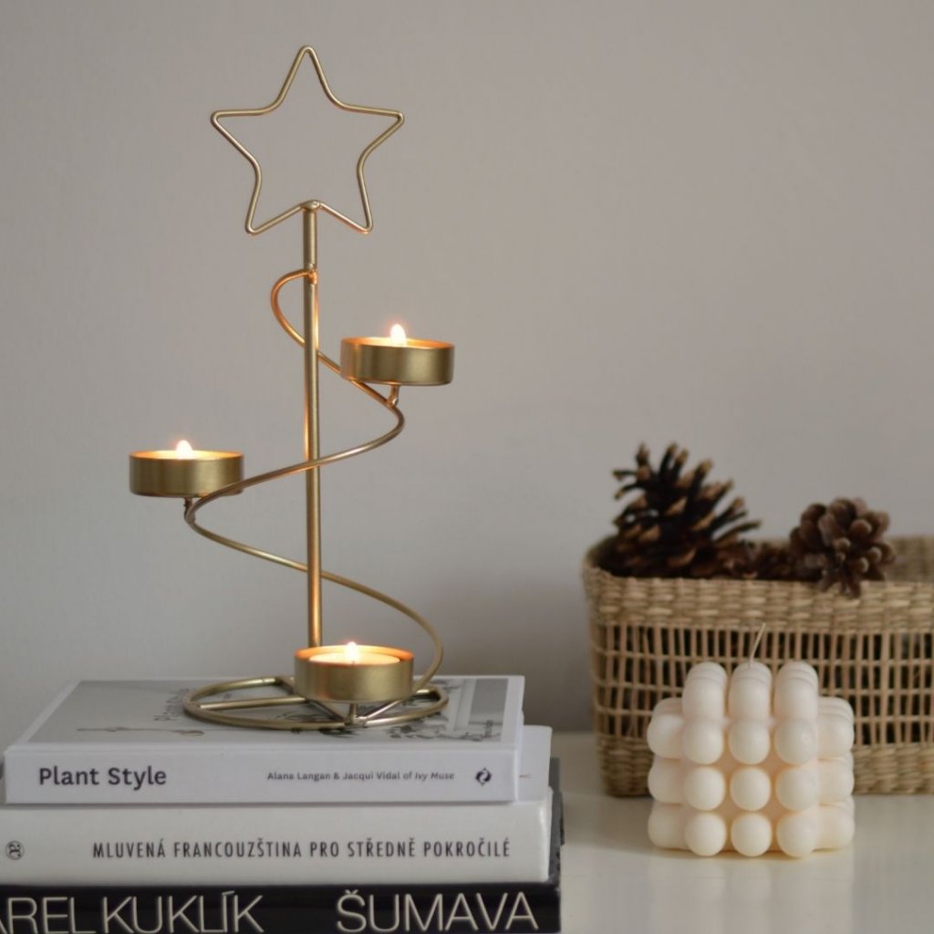 vánoční zlatý svícen je nádherná dekorace na vánočním stole
