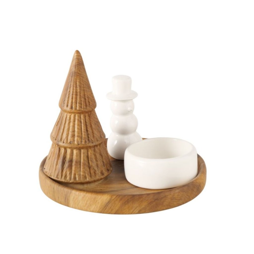 - Vánoční keramická dekorace se stromkem a sněhulákem - 12 cm x 13 cm