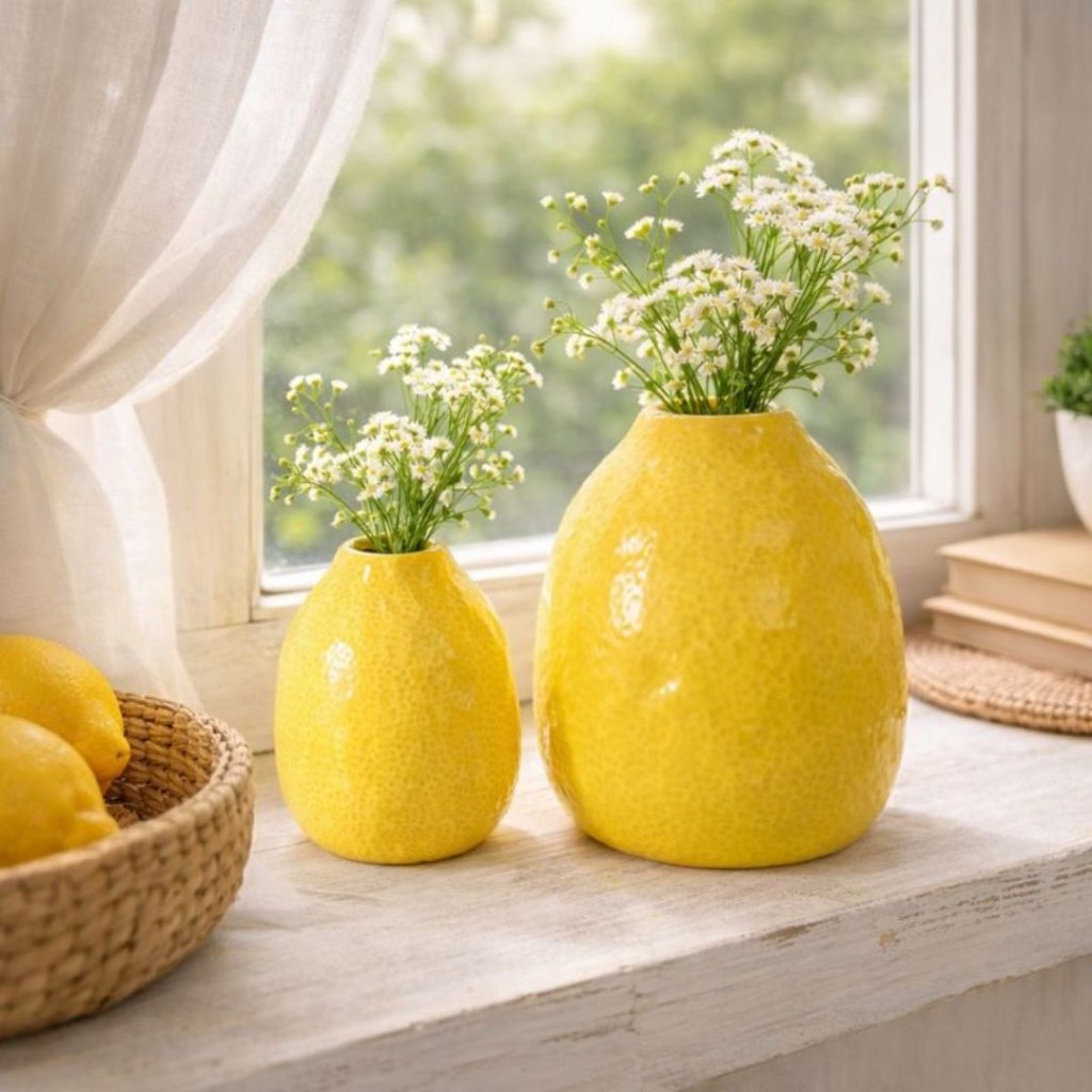 - Keramická váza Citronela v menším provedení vnese do interiéru svěží akcent a hravou energii. Lesklý povrch s jemnou strukturou připomínající citronovou kůru působí originálně a přirozeně. Váza je ideální na drobné květiny, větvičky nebo jako samostatná dekorace, která rozzáří poličku, stůl i parapet.