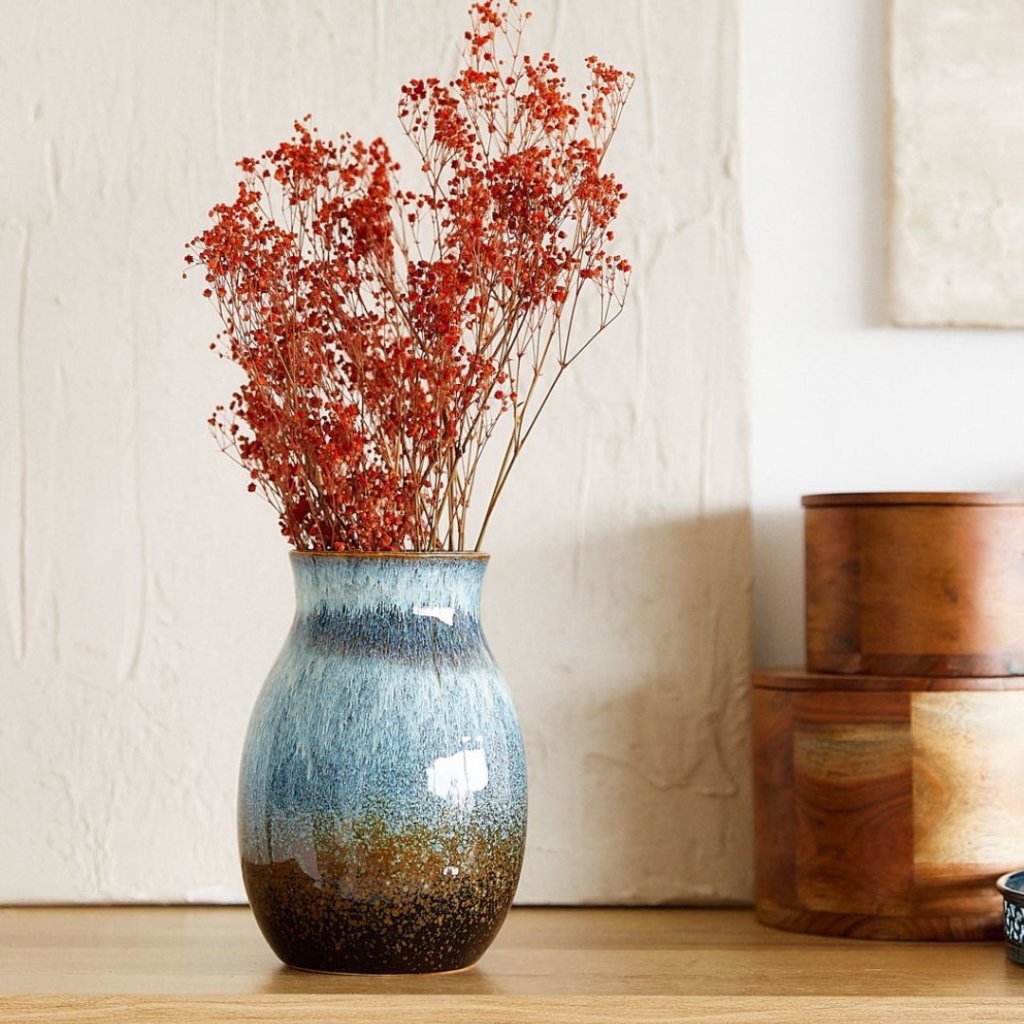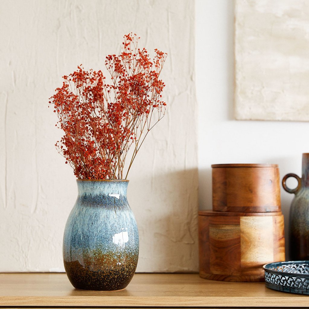 - Unikátní textura vázy LAVE, připomínající přirozenou hru barev moře o půlnoci, z ní dělá jedinečný doplněk v jakémkoli prostoru.