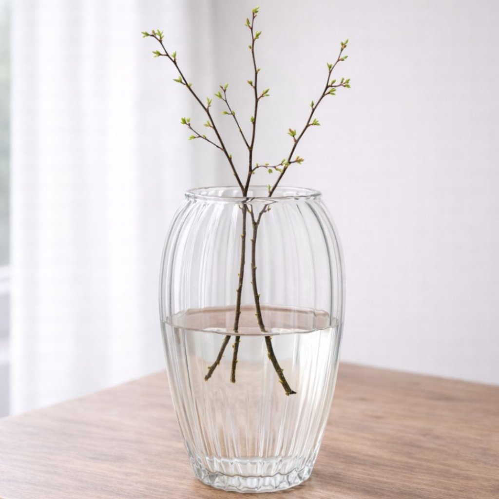 Jemné svislé drážky dodávají váze hloubku, aniž by rušily její klid.