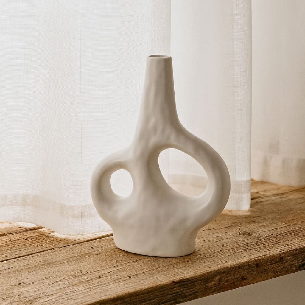 - Váza z bílé glazované keramiky,která mluví sama za sebe.