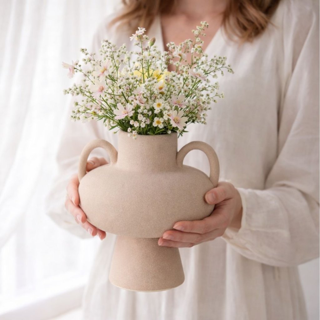 - Béžová keramická váza/džbán Stefany je designová váza, která se stane pěkným detailem v domácnosti. Ideální pro vaše květiny, umístěte vázu jako zátiší na parapet nebo na odkládací stolek.