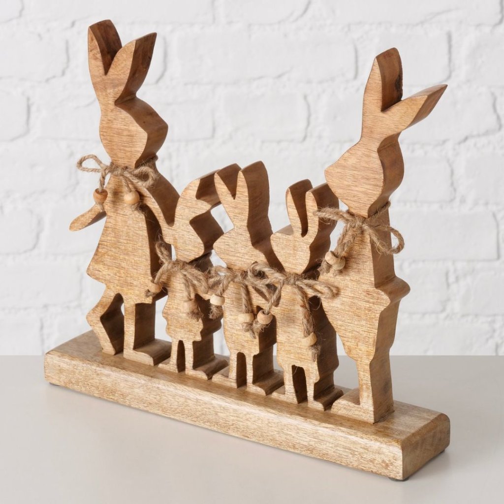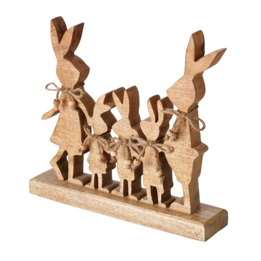 - Každý zajíc je pečlivě vyřezán a zpracován z kvalitního mangového dřeva, což zaručuje trvanlivost a krásný přírodní vzhled.