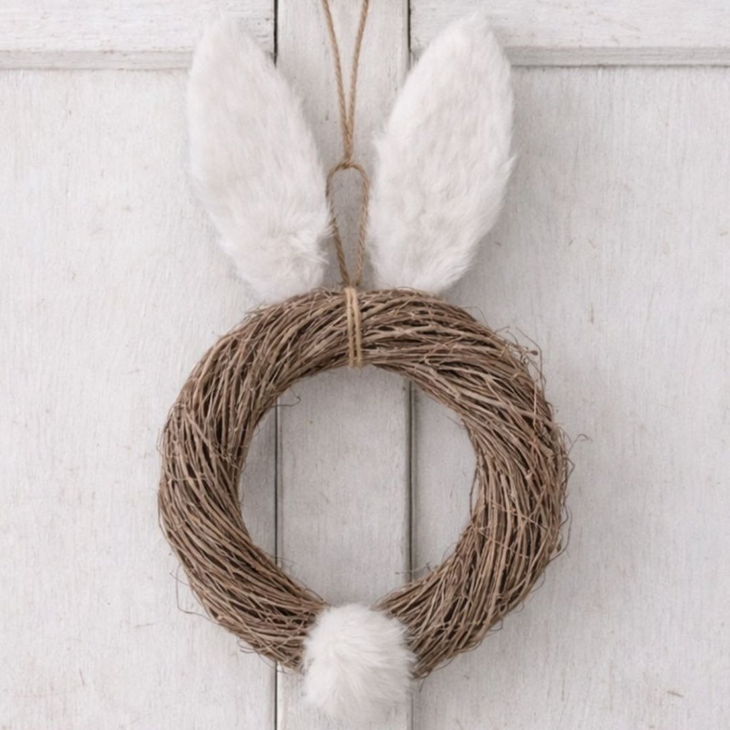 - Jemný velikonoční věnec s oušky a hebkým ocáskem přináší do interiéru hravou lehkost a čistou jarní atmosféru.