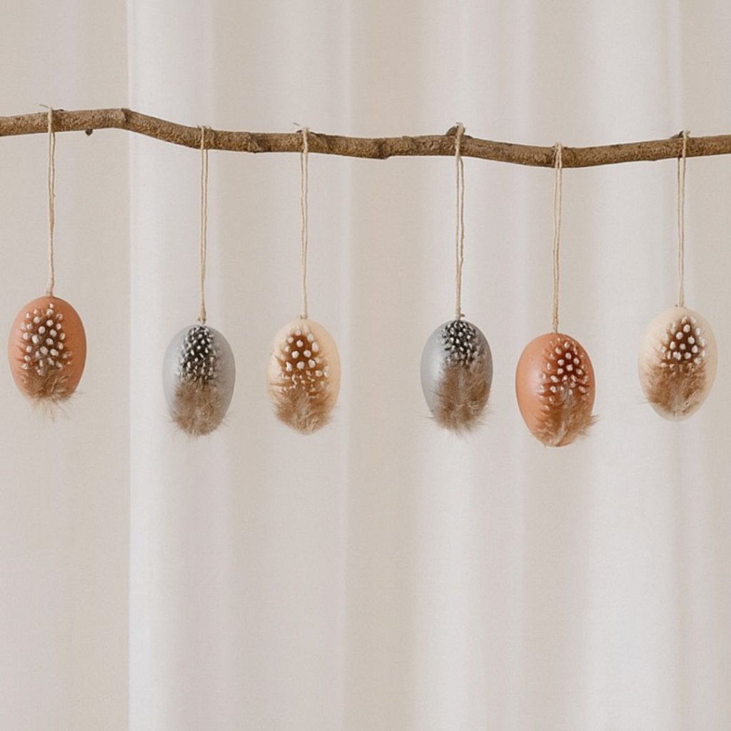 - Velikonoční závěsné vajíčo, kropenaté s peříčkem je krásným doplňkem pro vaše další tvoření.