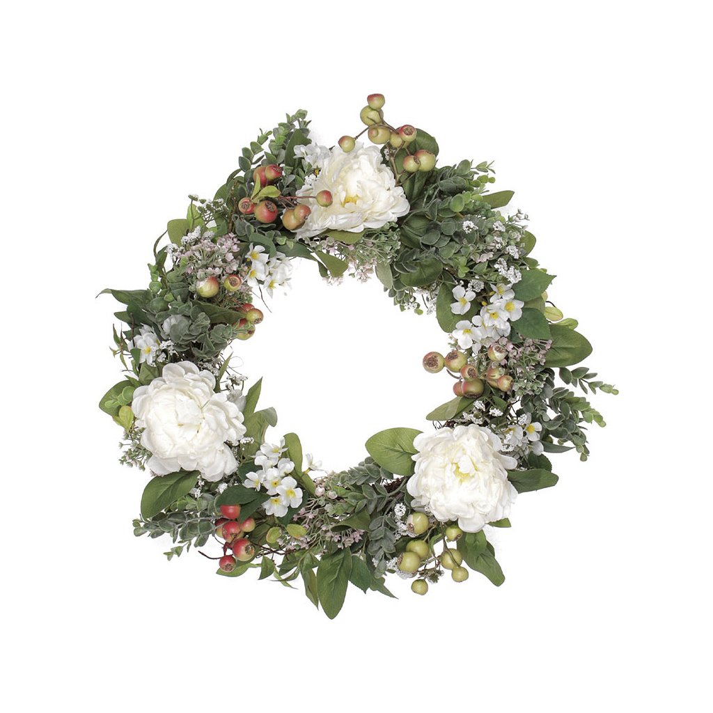 Věncem si můžete ozdobit dveře nebo okno , ale bude krásný i jen položený na nábytku nebo zavěšený na stěně .Krásná dekorace po celý rok , na proutěném základu .Kruhový věnec přináší do vašeho domova krásnou harmonii.Pivoňky jsou dokonalým květem na váš stůl