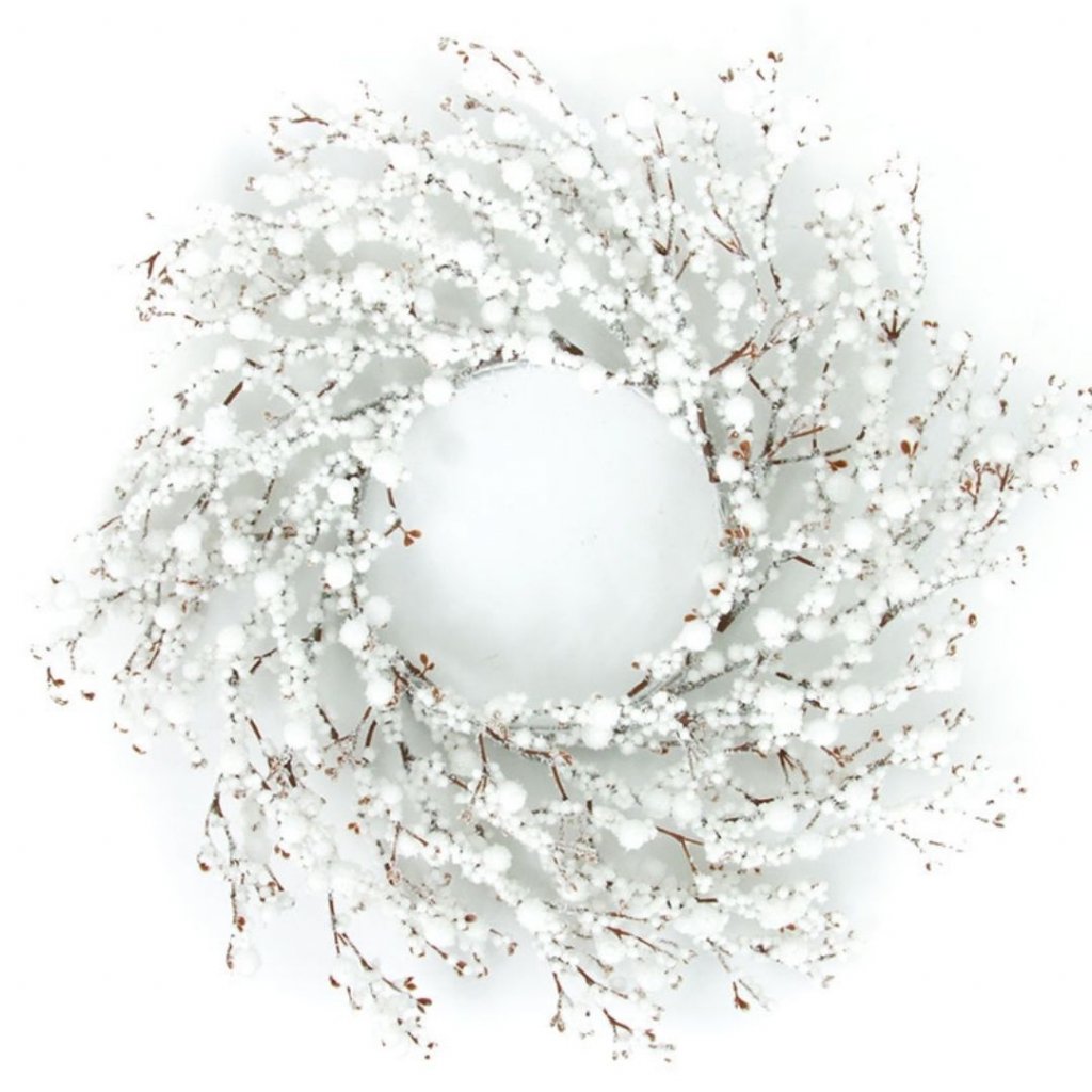Krásný věnec z bobulí v bílém zasněženém provedení.Pro každé roční období doladí váš domov.Minimalistický styl na stůl, dveře nebo na stěnu.