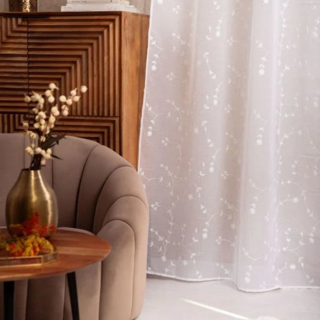 - Elegantní voálová záclona s výšivkou listů