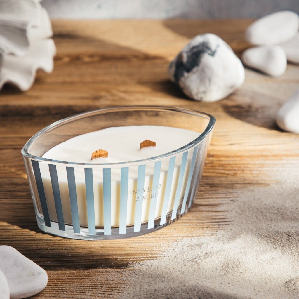 - Díky velkému objemu 480 g je svíčka ideální pro dlouhé večery s knihou, relaxační koupele nebo večeře při svíčkách. Vytváří útulnou atmosféru a naplňuje místnost svěží vůní inspirovanou oceánem.
