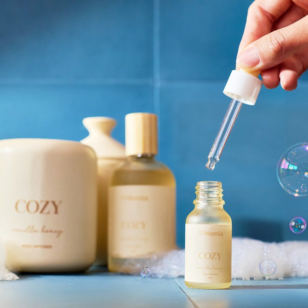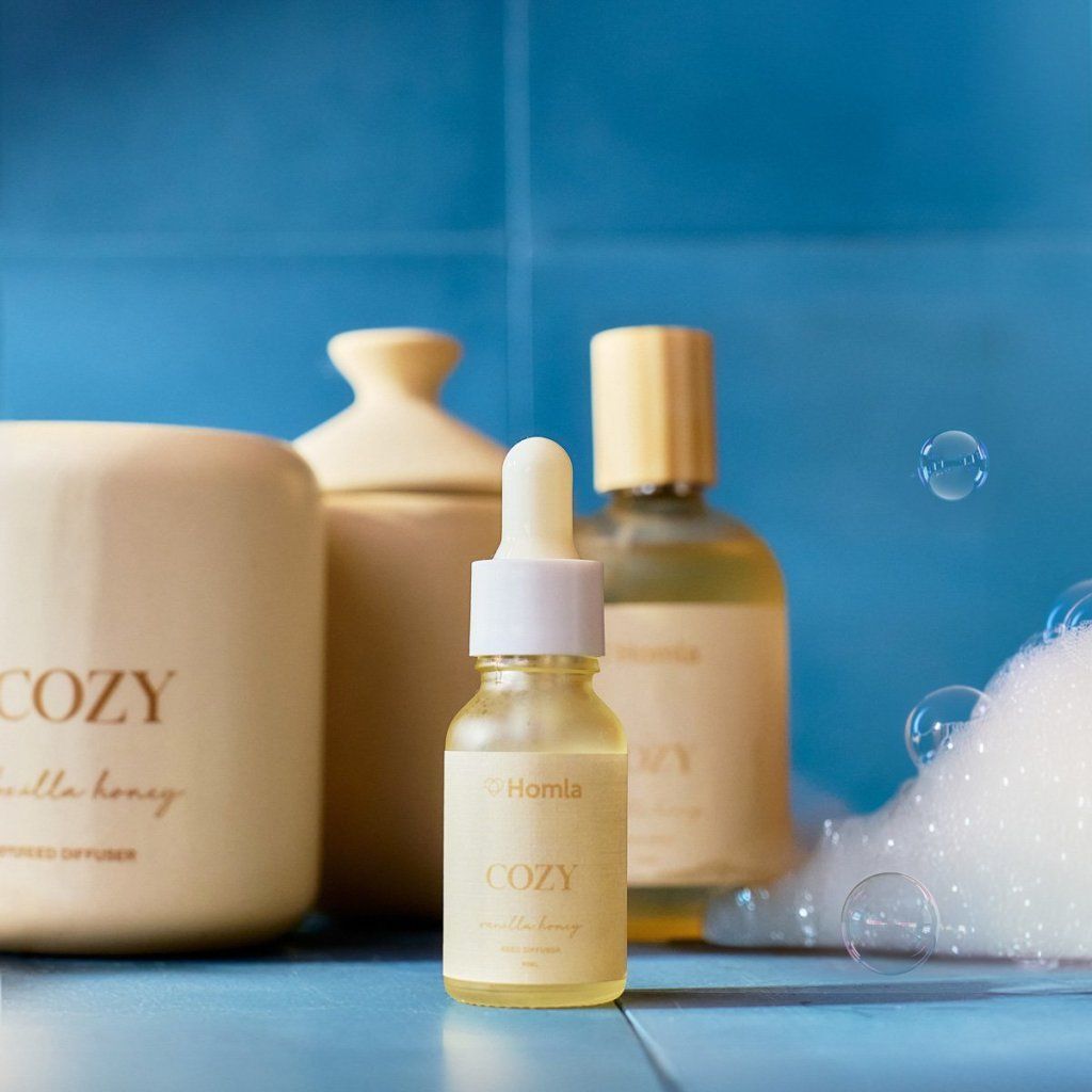 - Vonný olej COZY je perfektní způsob, jak jednoduchým a stylovým způsobem vylepšit atmosféru jakéhokoli interiéru. Tato výjimečně koncentrovaná esence s obsahem sladkých tónů vanilky a medu nejenže přináší do místnosti příjemnou vůni, ale také dokonale uvolňuje a uvolňuje.