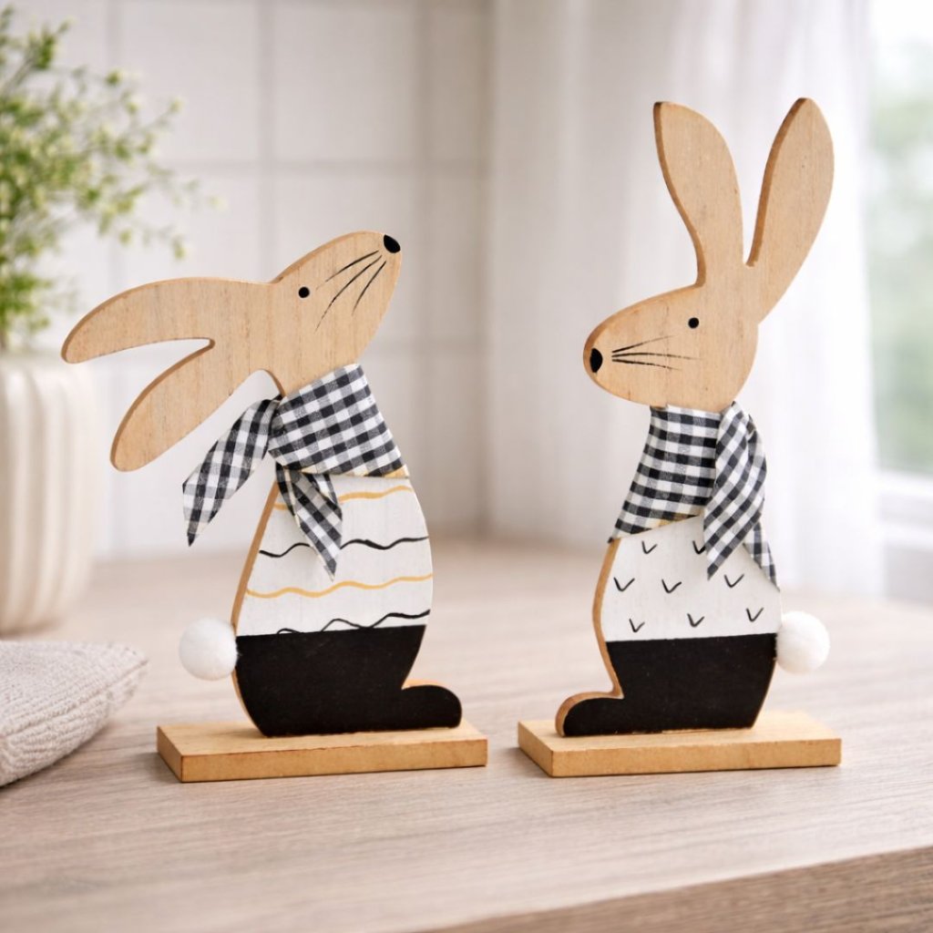 - Jemná velikonoční dekorace, která působí hravě a přitom klidně. Přírodní dřevo v kombinaci s látkovým šátkem krásně doplní jarní výzdobu na stole, parapetu i polici.