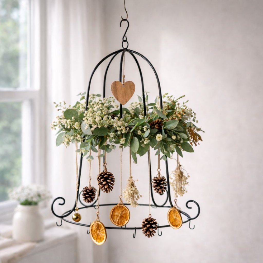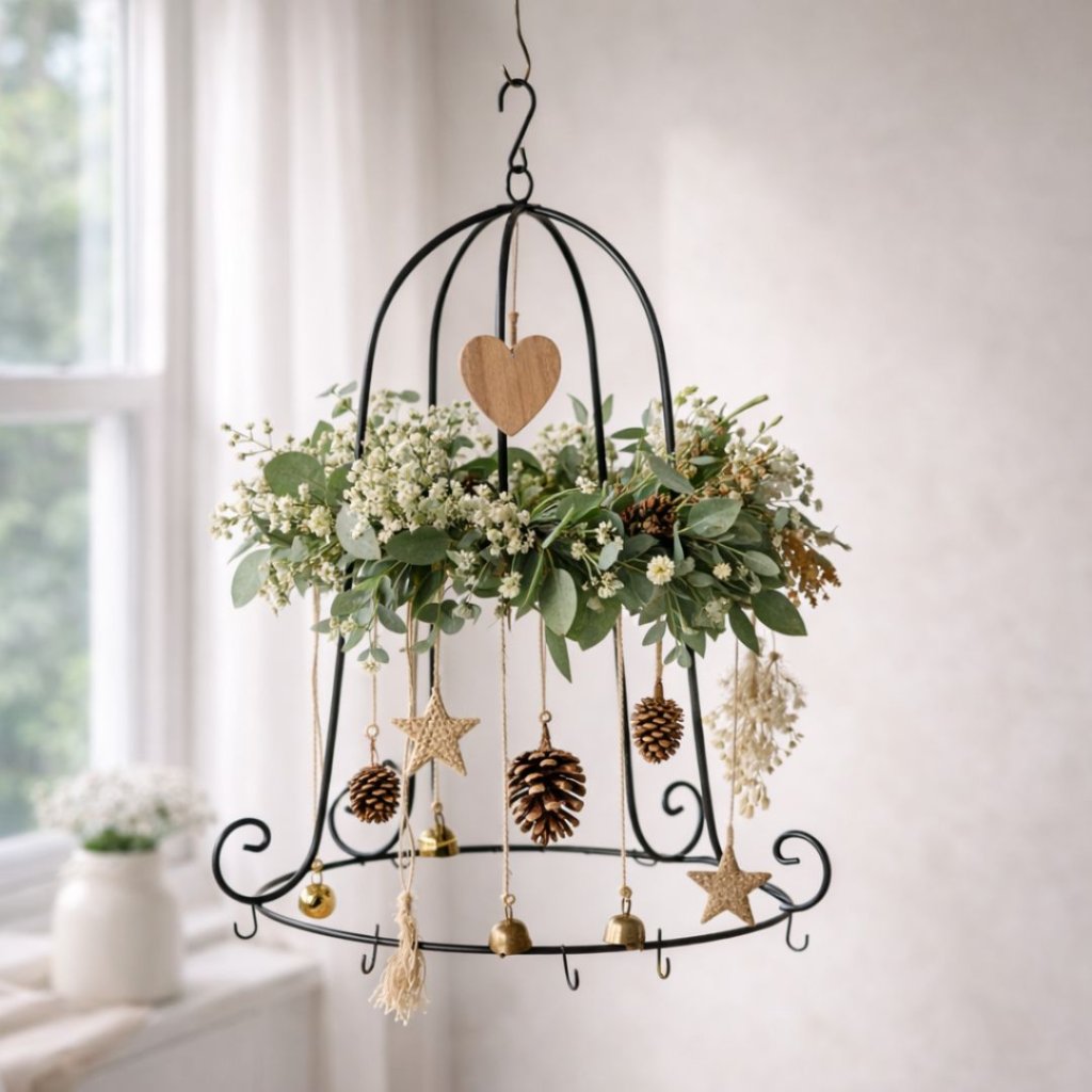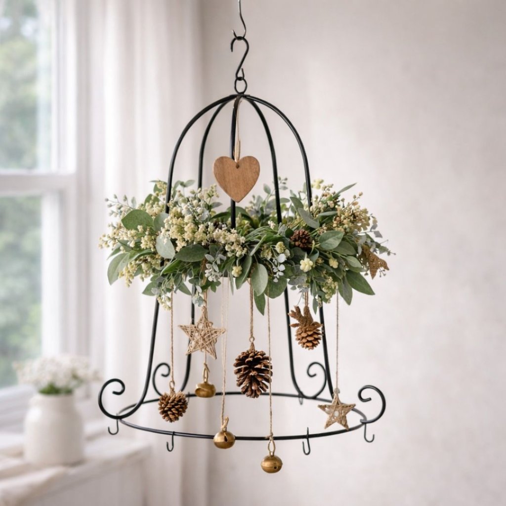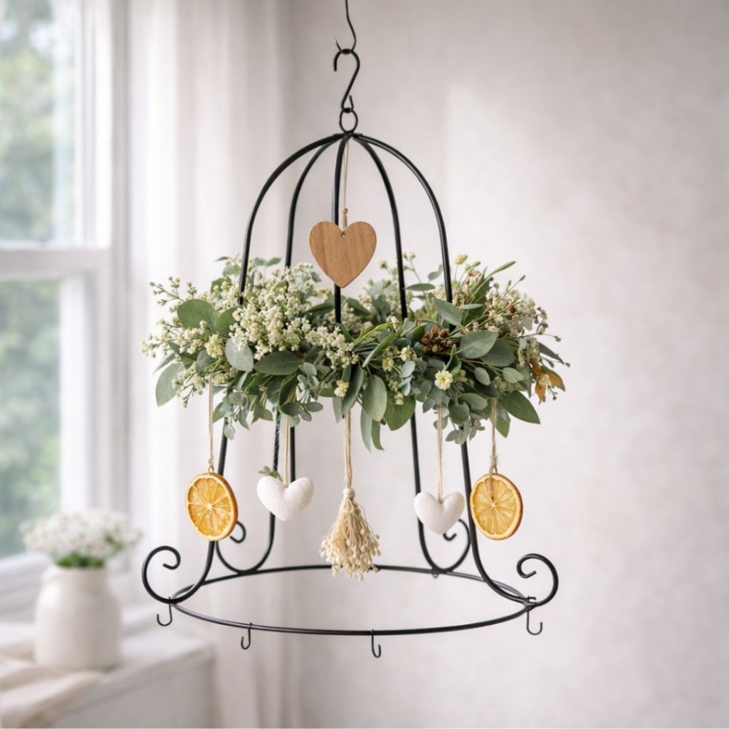 Elegantní kovová dekorace, která vnese do interiéru lehkost a vzdušnost. Díky sedmi háčkům nabízí prostor pro celoroční výzdobu – zavěste sušené květy, drobné dekorace, svíčky nebo sezónní ozdoby a snadno obměňujte vzhled podle nálady i ročního období. Nadčasový černý kov krásně vynikne v moderním i rustikálním interiéru. - Rozměry: