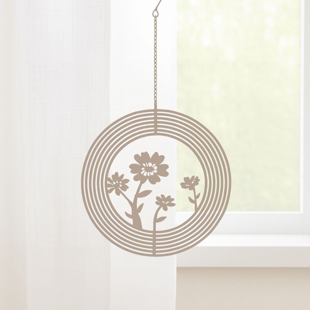 - Kruhový motiv s kvetinami působí vzdušně a harmonicky, krásně se vyjímá zavěšený v okně, kde nechá vyniknout jemnému světlu.