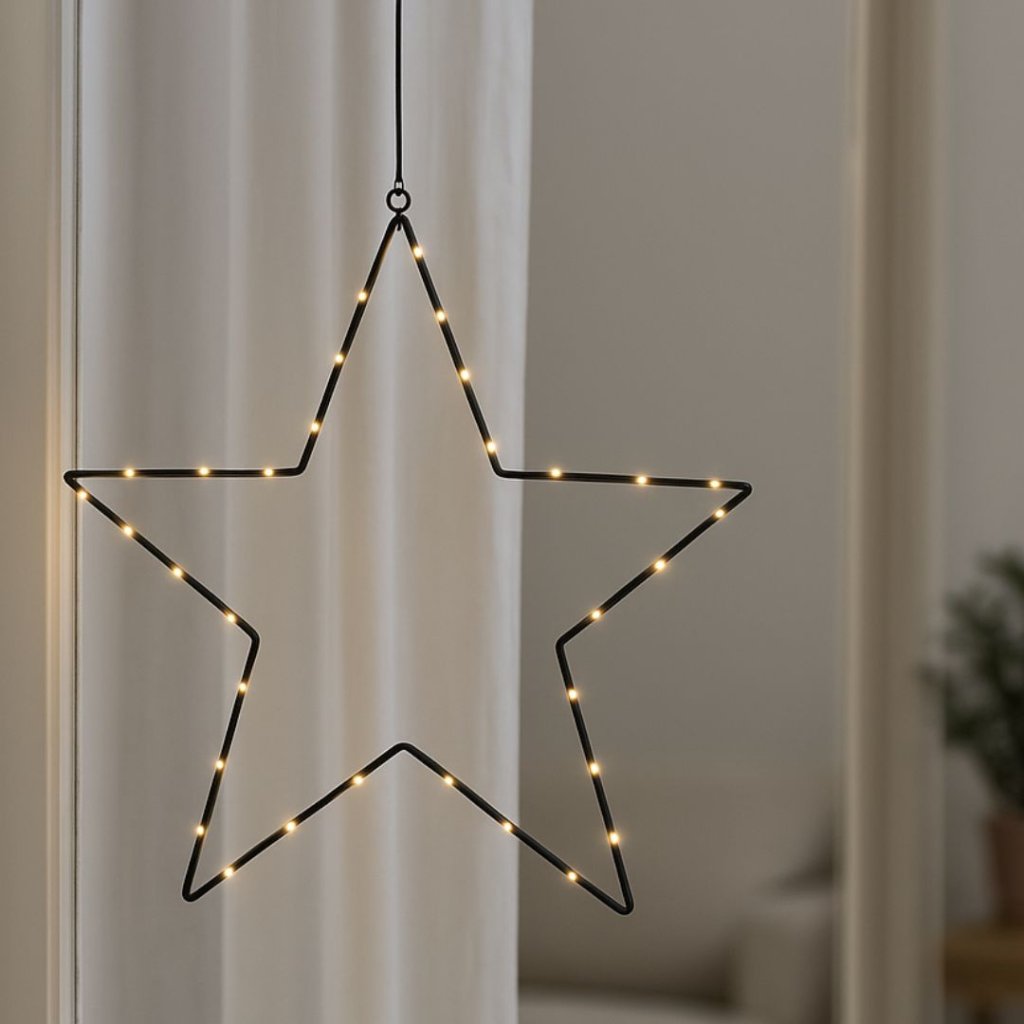 - Závěsná LED hvězda z černého kovu rozzáří váš interiér jemným teplým světlem. Minimalistický design v elegantním černém provedení skvěle vynikne v okně, na stěně nebo jako součást sváteční výzdoby.