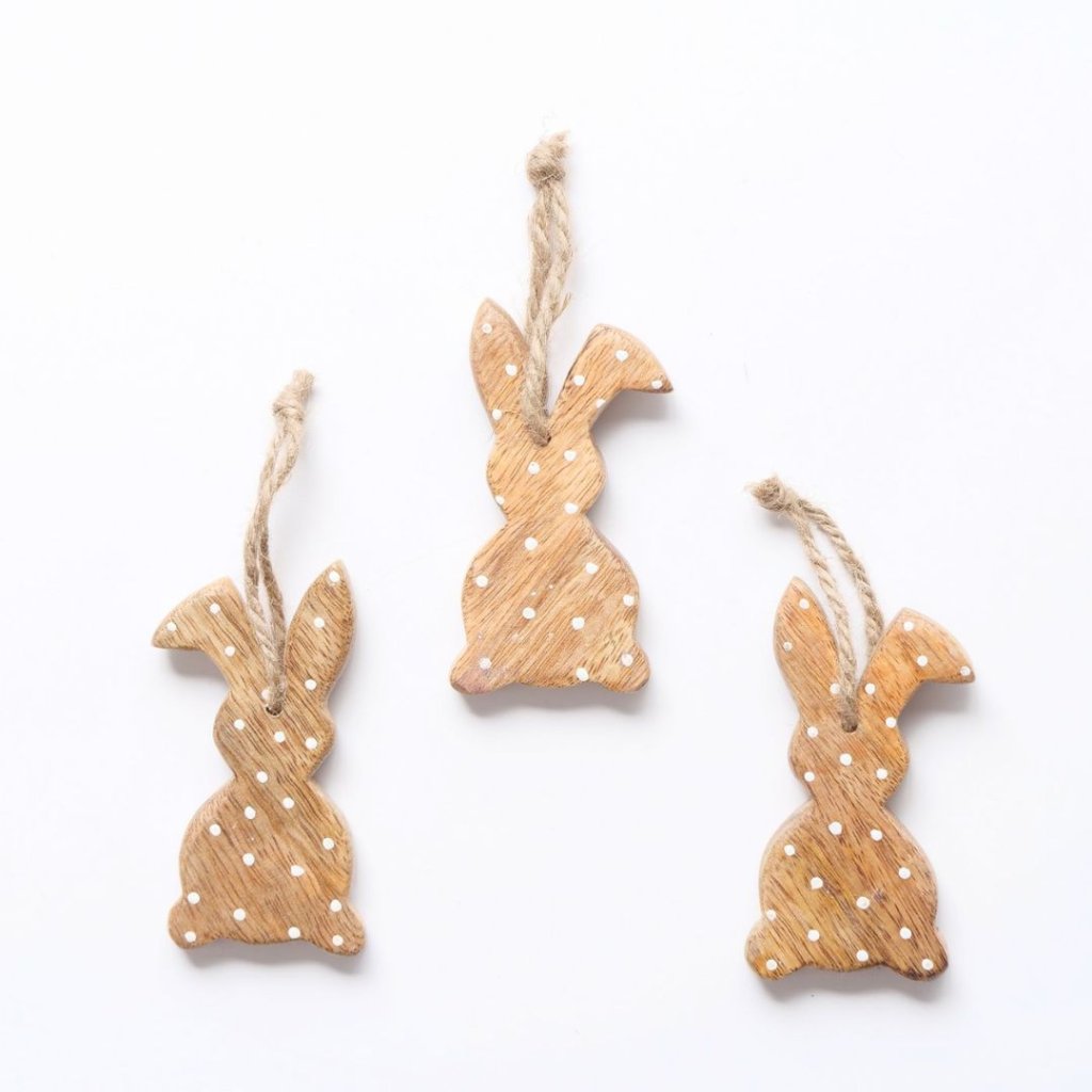 - Roztomilý závěsný zajíček s bílými puntíky na jutovém provázku je ten pravým doplňkem pro vaše velikonoční tvoření.