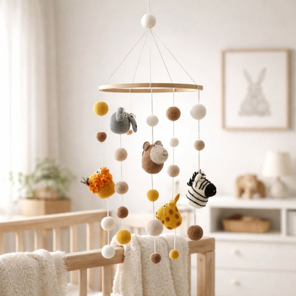- Každý prvek je pečlivě tvarovaný ručním plstěním a tvoří harmonický celek, který podporuje klidnou atmosféru a jemně stimuluje dětskou pozornost.