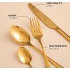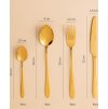 - Příbory obsahují: čtyři nože ( 23 cm ), čtyři lžíce ( 20 cm ), čtyři vidličky ( 20 cm ), čtyři čajové lžičky ( 13 cm ). Každý prvek je vyroben v klasické zlaté barvě s leštěným, lesklým povrchem, který dokonale ladí se světlem. ABELE se vyznačují klasickými, elegantními tvary a jsou ideální jak pro každodenní použití, tak pro sváteční aranžmá.